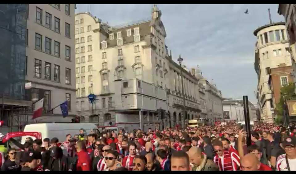 Οι εικόνες και τα βίντεο από την καρδιά της βρετανικής πρωτεύουσας αποτυπώνουν για ακόμη μία φορά την αφοσίωση και το πάθος των φίλων του Θρύλου, που δεν σταματούν να στηρίζουν την ομάδα τους, όπου κι αν αγωνίζεται.