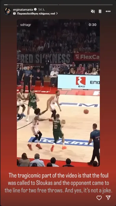 «Το τραγικοκωμικό σημείο του βίντεο είναι ότι το φάουλ το χρεώθηκε ο Σλούκας και ο αντίπαλος κέρδισε δύο-τρεις βολές. Και ναι, δεν είναι ανέκδοτο», έγραψε ο κόουτς του «τριφυλλιού», ανεβάζοντας τους τόνους για ακόμη μια φορά.