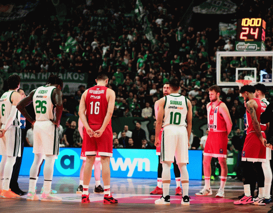 Ενός λεπτού σιγή τηρήθηκε στο Telekom Center Athens πριν το τζάμπολ της αναμέτρησης του Παναθηναϊκού AKTOR με τον Ολυμπιακό στη μνήμη του Βασίλη