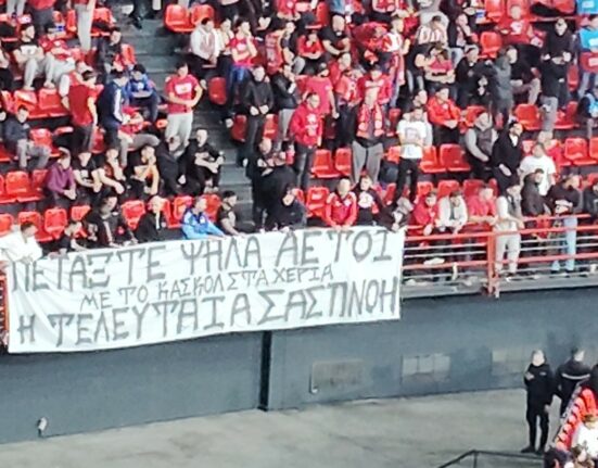 Το πανό των φίλων του Ολυμπιακού για τα επτά θύματα του ατυχήματος της Ρουμανίας