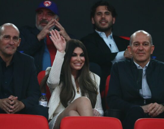 Η πρέσβης των ΗΠΑ, Κίμπερλι Γκίλφοϊλ στο ΣΕΦ μαζί με τους προέδρους του Ολυμπιακού