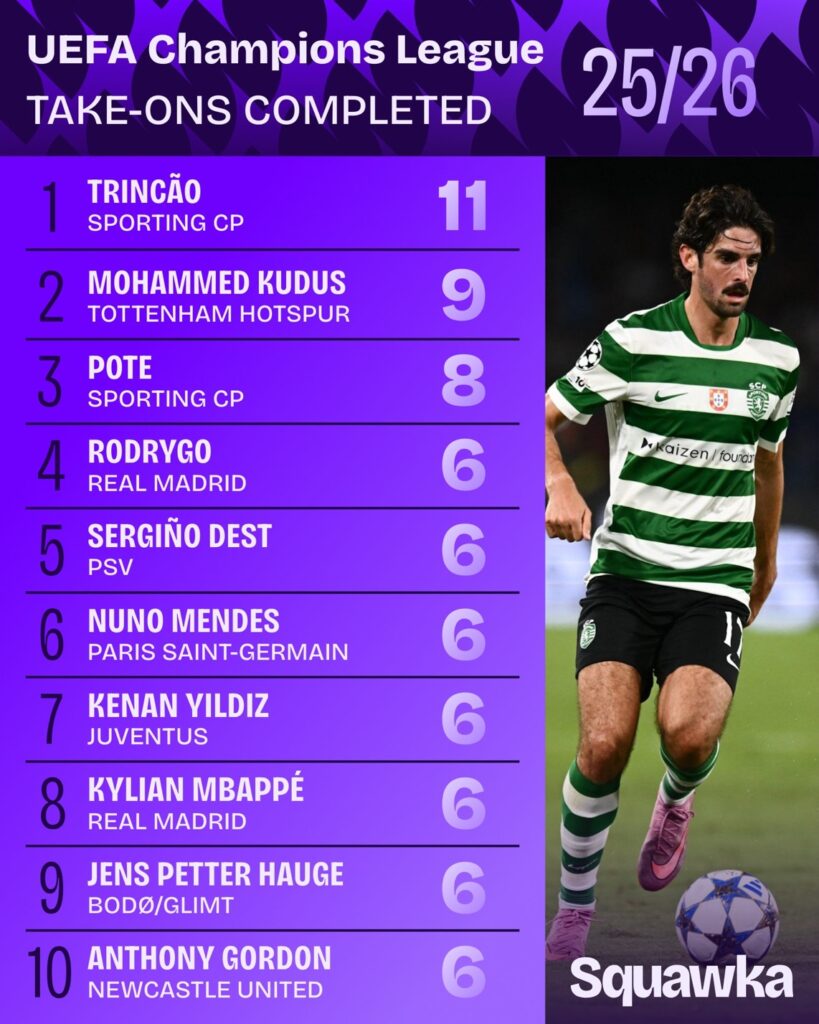 Στη λίστα βρίσκεται και ο Ντάνιελ Ποντένσε, που μετράει επτά ευκαιρίες και μοιράζεται την 8η θέση μαζί με τους Πεπέ, Γκριμάλντο, Βιρτς και Προβόντ.