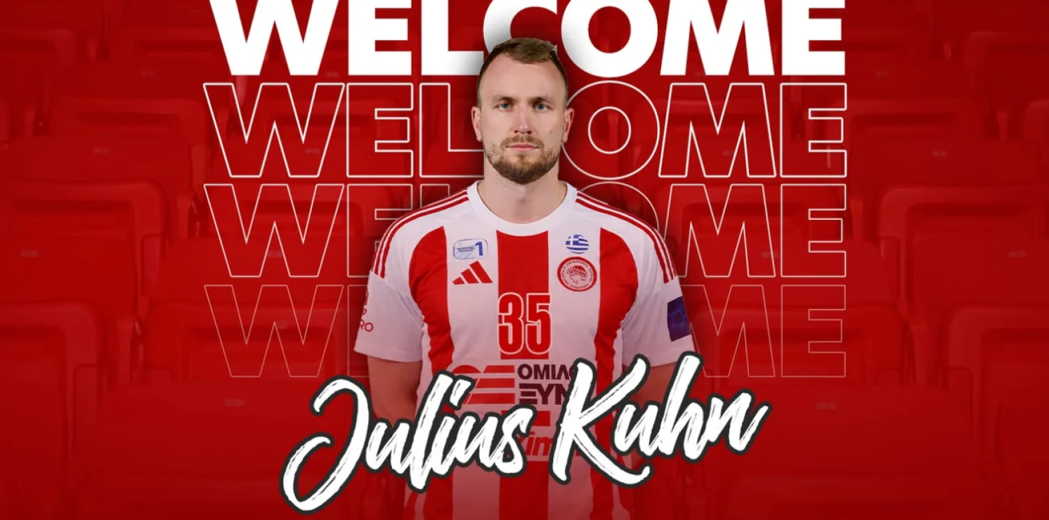 Ο ΟΛΥΜΠΙΑΚΟΣ Σ.Φ.Π. ανακοινώνει την έναρξη της συνεργασίας του με τον Γιούλιους Κιουν. Ο διεθνής Γερμανός αριστερός ίντερ (1/4/1993, 1,98μ.) υπέγραψε το νέο του συμβόλαιο και εντάσσεται στο ρόστερ της ομάδας χάντμπολ του συλλόγου.