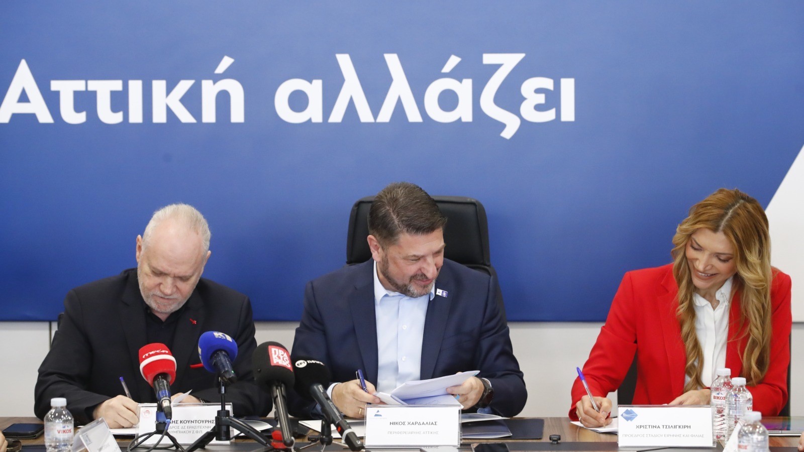 Την προγραμματική σύμβαση για την κατασκευή του Κέντρου Υδάτινου Αθλητισμού και Πολιτισμού (ΚΥΔΑΠ) του Ολυμπιακού Σ.Φ.Π. υπέγραψε σήμερα, Παρασκευή (3/4), ο Περιφερειάρχης Αττικής, Νίκος Χαρδαλιάς, μαζί με τον Πρόεδρο του Ολυμπιακού Σ.Φ.Π., Μιχάλη Κουντούρη και την Πρόεδρο του Σταδίου Ειρήνης και Φιλίας, Χριστίνα Τσιλιγκίρη, παρουσία του Αναπληρωτή Υπουργού Αθλητισμού, Γιάννη Βρούτση και του Δημάρχου Πειραιά, Γιάννη Μώραλη.