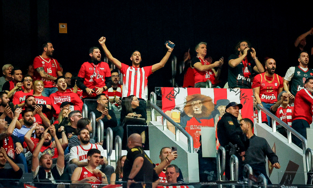 Συγκεκριμένα, 600 φίλοι των Πειραιωτών βρίσκονται στη Roig Arena, για να στηρίξουν και να εμψυχώσουν τους παίκτες της αγαπημένης τους ομάδα.