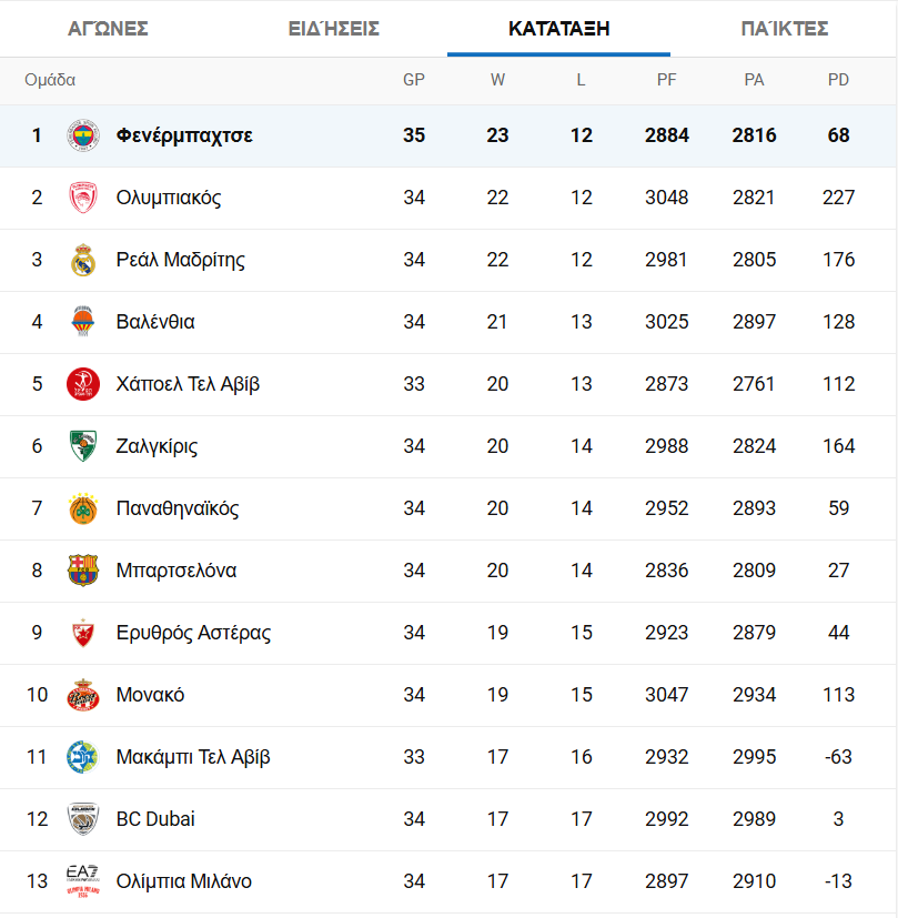 Έτσι, ο τουρκικούς σύλλογος έπεσε στο 23-12, με τον Ολυμπιακό να φλερτάρει με την πρώτη θέση, ενώ οι Γερμανοί ανέβηκαν στο 15-20.