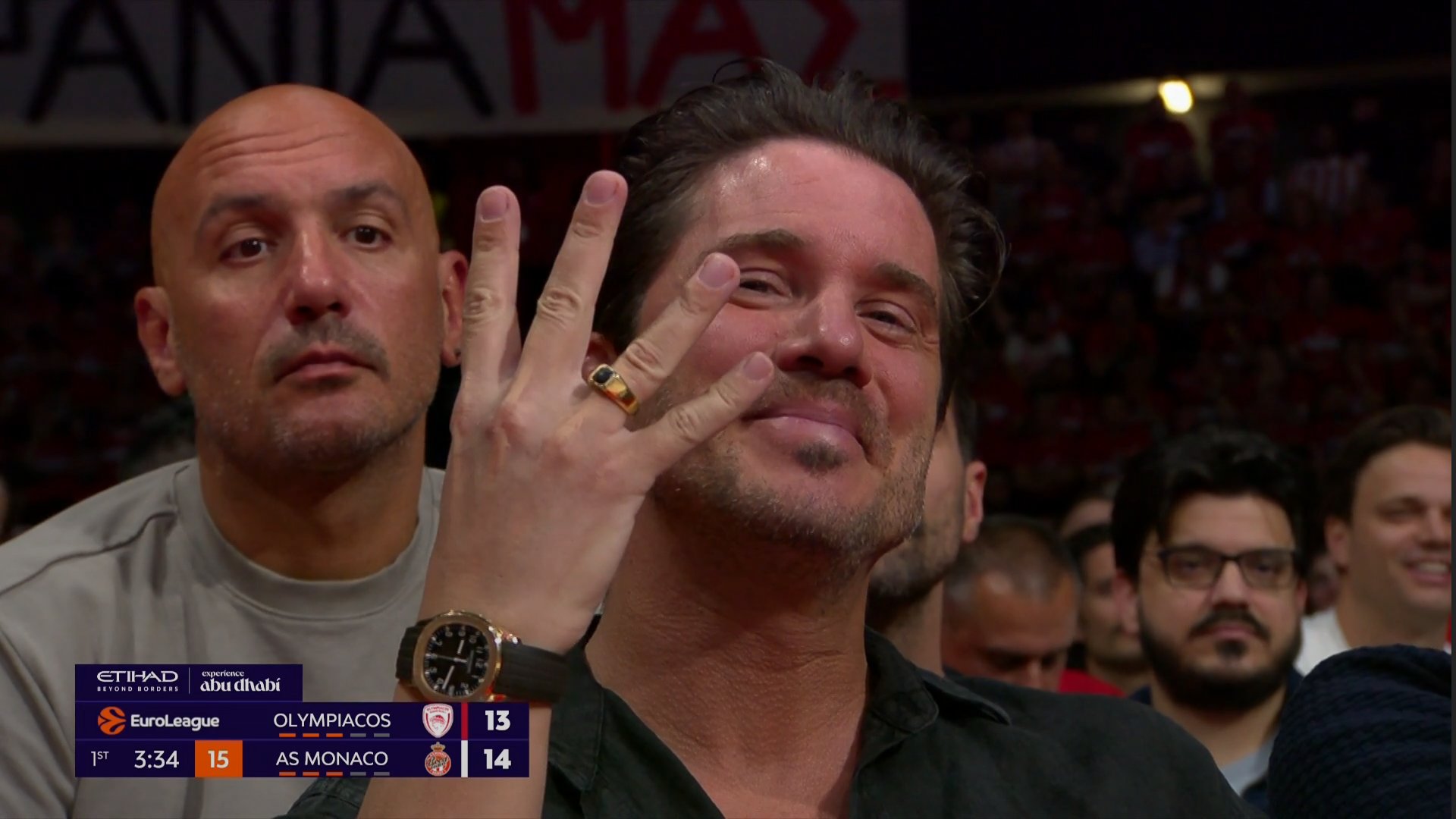 Μάλιστα, η παρουσία του δεν πέρασε απαρατήρητη, καθώς οι κάμερες του γηπέδου τον εντόπισαν και η εικόνα του προβλήθηκε και στις γιγαντοοθόνες του ΣΕΦ, με το κοινό να αντιδρά.