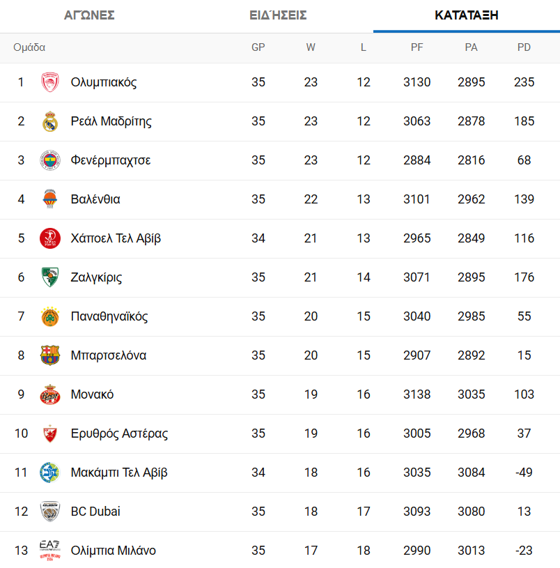Οι Πειραιώτες έχουν την ισοβαθμία με τη Φενέρμπαχτσε (+9 στα μεταξύ τους παιχνίδια) και με 3/3 θα είναι σίγουρα πρώτοι.