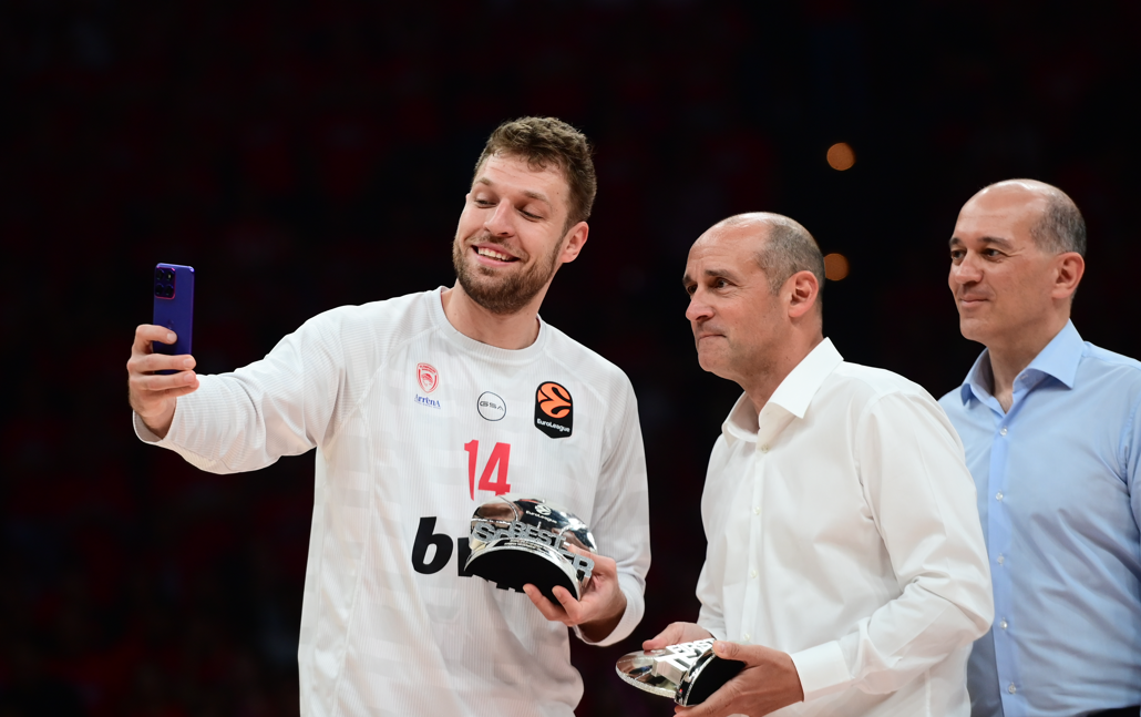 Ο παίκτης των ερυθρόλευκων παρέλαβε το βραβείο του MVP της κανονικής περιόδου, γνωρίζοντας την αποθέωση από τον κόσμο της ομάδας.