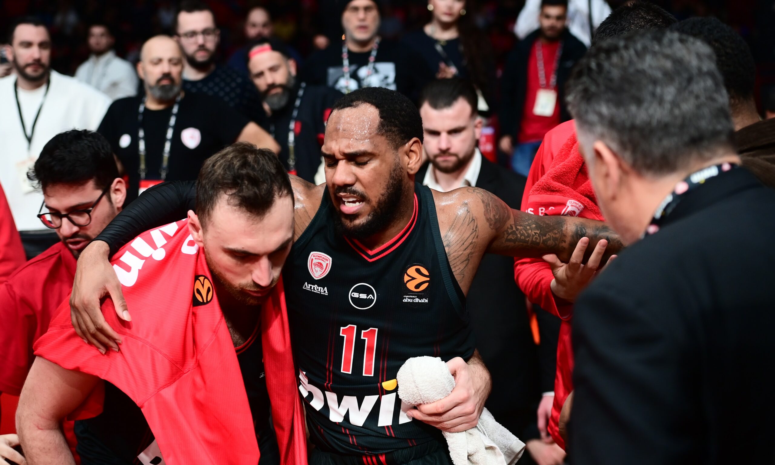 Άτυχος στάθηκε ο Μόντε Μόρις στο παιχνίδι του Ολυμπιακού με την Μπάγερν Μονάχου για την 21η αγωνιστική της Euroleague, καθώς λίγο πριν το φινάλε τραυματίστηκε και έφυγε υποβασταζόμενος από το παρκέ του Σταδίου Ειρήνης και Φιλίας.