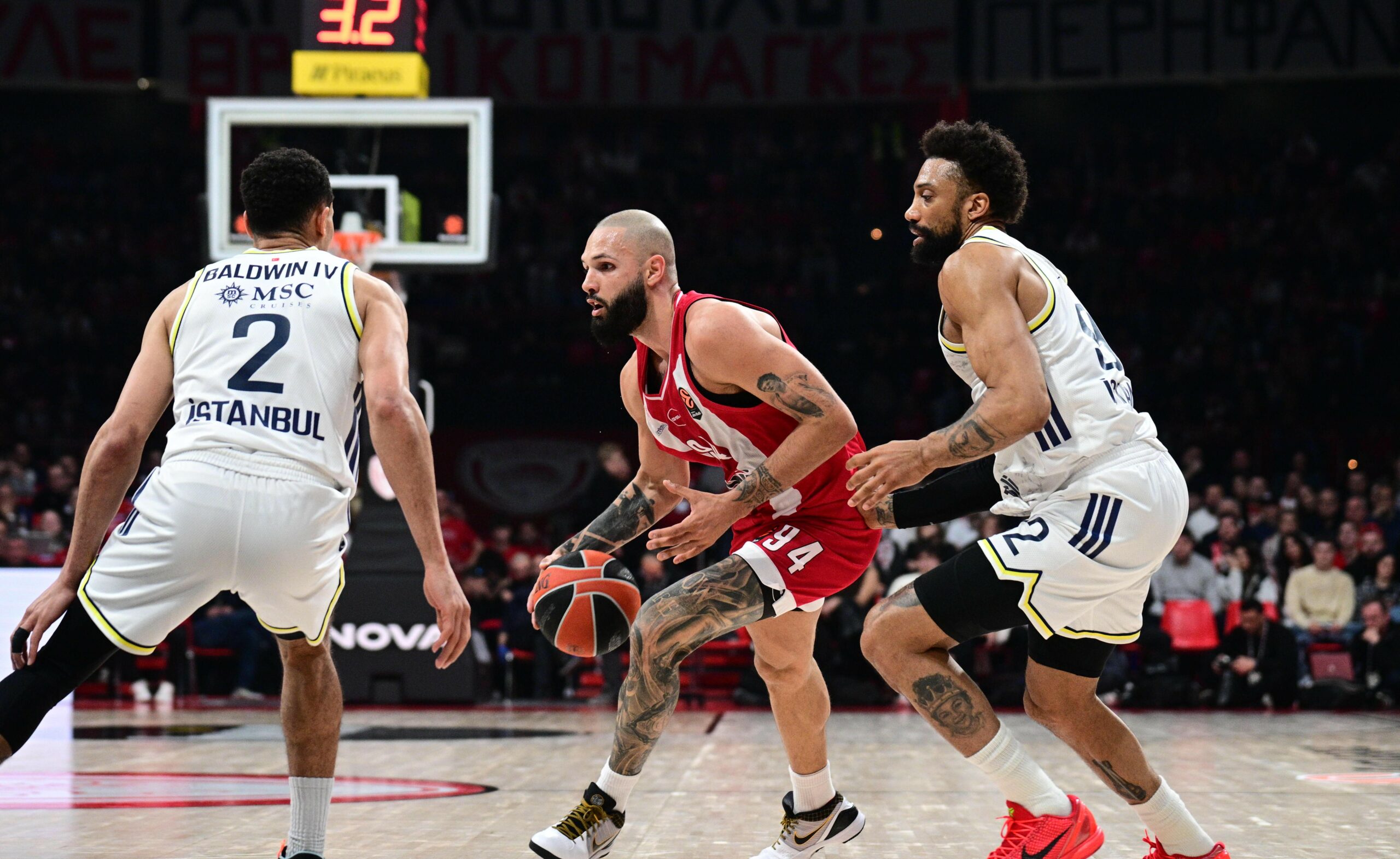 Σε εξέλιξη βρίσκεται το Ολυμπιακός – Φενέρμπαχτσε, για την εξ’ αναβολής αναμέτρησης της 14ης αγωνιστικής της EuroLeague, με τον Εβάν Φουρνιέ να πραγματοποιεί ένα εξαιρετικό πρώτο ημίχρονο.