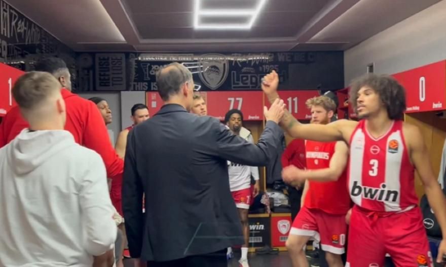 Μετά το τέλος της αναμέτρησης, ο Γιώργος Μπαρτζώκας μπήκε στα αποδυτήρια και απευθύνθηκε στους παίκτες του, δίνοντας με λίγες λέξεις το στίγμα της ικανοποίησής του για την εικόνα της ομάδας.