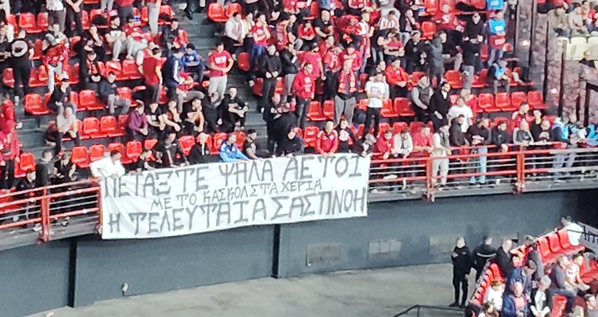 Παράλληλα οι φίλοι των ερυθρολεύκων ύψωσαν πανό στη μνήμη των θυμάτων το οποίο έγραφε: