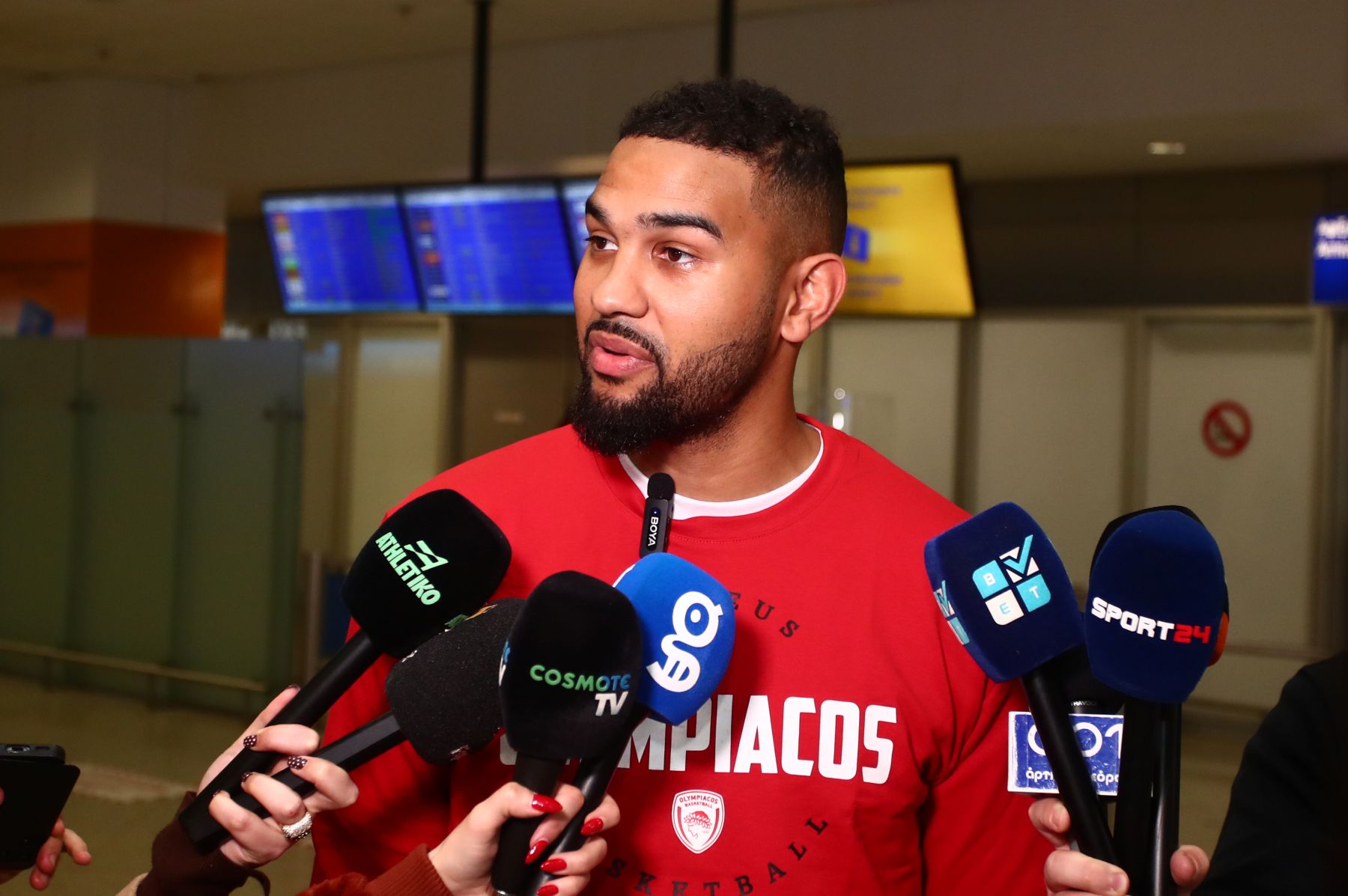 Για το αν έχει μιλήσει με κανένα και το τι περιμένει: «Δεν έχω μιλήσει με κανέναν όλα έγιναν γρήγορα. Εστιάζω στην ομάδα που έχουμε, το ποιοι είναι εδώ και το σύστημα της ομάδας. Σύντομα περιμένω να έχουμε περισσότερα στο μέλλον. Περιμένω μπάσκετ υψηλού επιπέδου, να είμαι ανταγωνιστικός. Με τα χρόνια ο Ολυμπιακός χτίζει χαρακτήρα σαν ομάδα και περιμένω να βγω στο παρκέ και να ανταποκριθώ με τη φανέλα της ομάδας και ελπίζω να φέρω νίκες και να είμαι στο καλύτερο επίπεδο».