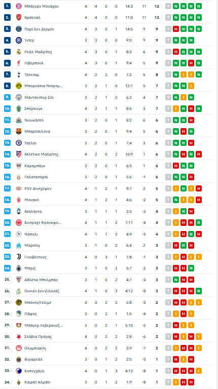 Με αυτόν τον έναν πόντο, ο Ολυμπιακός φτάνει τους 2 συνολικά μετά τις πρώτες τέσσερις αγωνιστικές της League Phase και αυτή τη στιγμή βρίσκεται στην 31η θέση της γενικής κατάταξης στη βαθμολογία της διοργάνωσης.