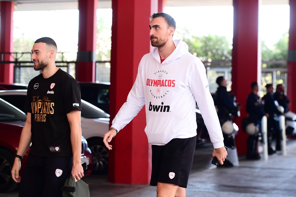 Η αποστολή του Ολυμπιακού έφτασε στο Στάδιο Ειρήνης και Φιλίας για το μεγάλο ντέρμπι με τον Παναθηναϊκό, στο πλαίσιο της 2ης αγωνιστικής της Stoiximan Basket League.