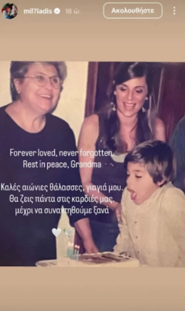 Ο Μιλτιάδης Μαρινάκης με story του στο Instagram αποχαιρέτησε τη γιαγιά του, η οποία έφυγε από τη ζωή.