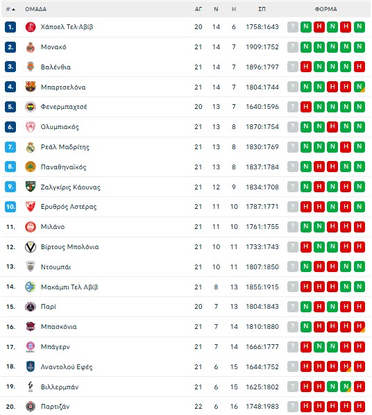 Πρόγραμμα / αποτελέσματα 22ης αγωνιστικής EuroLeague
