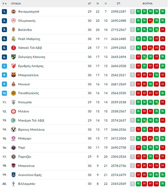 Από την άλλη πλευρά, η Παρί υποχώρησε στο 11-19, παραμένοντας χαμηλά στη βαθμολογία της διοργάνωσης.