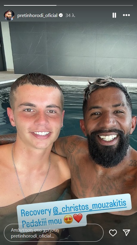 Ο Βραζιλιάνος δεξιός μπακ δημοσίευσε story στο Instagram, ποζάροντας μαζί με τον ταλαντούχο Χρήστο Μουζακίτη και γράφοντας χαρακτηριστικά «Παιδάκι μου!», επιβεβαιώνοντας το πόσο δεμένος νιώθει με τους πιτσιρικάδες του συλλόγου.