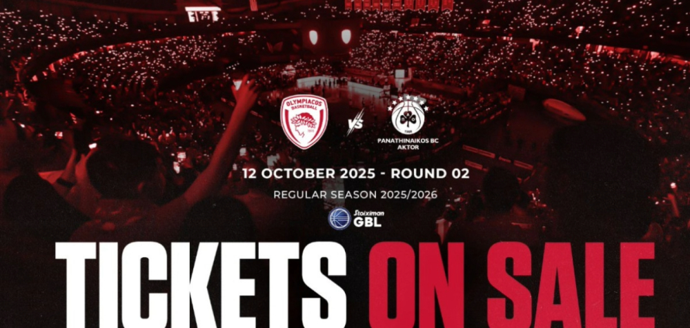 “Η Κ.Α.Ε. ΟΛΥΜΠΙΑΚΟΣ θα ήθελε να ενημερώσει τους φιλάθλους της ότι τα εισιτήρια για τον αγώνα της STOIXIMAN GBL με τον ΠΑΝΑΘΗΝΑΪΚΟ AKTOR που θα διεξαχθεί την Κυριακή 12/10/2025 με ώρα έναρξης 19:00 θα είναι διαθέσιμα προς πώληση από την Δευτέρα 29/09/2025 και ώρα 14:00, μέσω του www.olympiacosbc.gr, μέσω του www.ticketmaster.gr, είτε μέσω του τηλεφωνικού κέντρου, στο τηλέφωνο 2111996007.