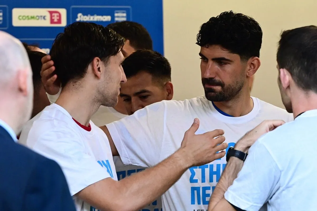 Πριν από τη σέντρα, ο Μπουχαλάκης πέρασε από τον πάγκο των «ερυθρόλευκων» και χαιρέτησε τους ανθρώπους με τους οποίους μοιράστηκε επιτυχίες και έντονες στιγμές. Η κάμερα «έπιασε» τις θερμές αγκαλιές με τον Παναγιώτη Ρέτσο και τον Ροντινέι, επιβεβαιώνοντας πως οι δεσμοί που δημιουργούνται στο ποδόσφαιρο μένουν ζωντανοί, όποια κι αν είναι η φανέλα που φοράει κανείς.