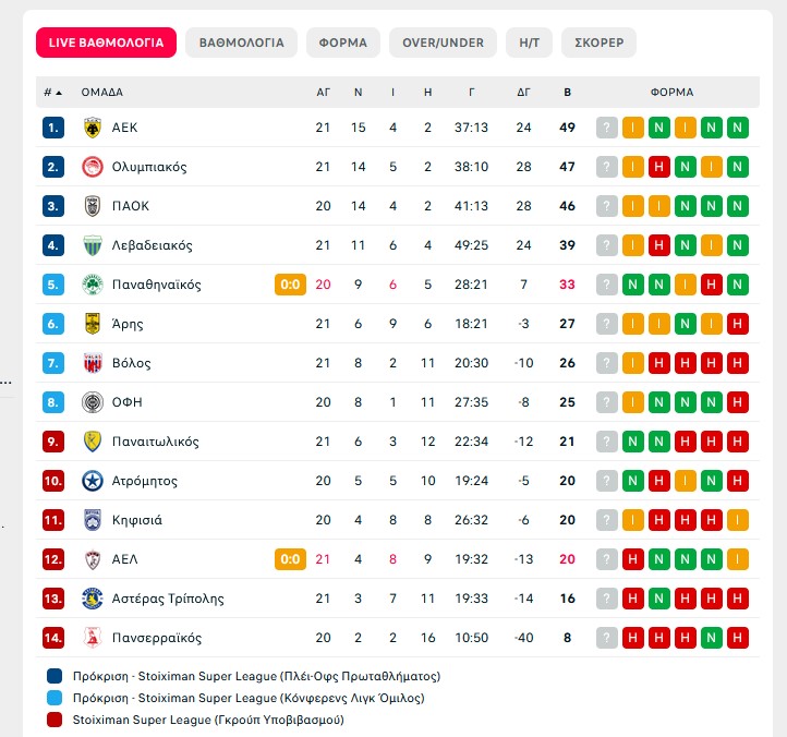 Το ντέρμπι της Τούμπας ανάμεσα σε ΠΑΟΚ και ΑΕΚ ολοκληρώθηκε χωρίς νικητή. Ένα αποτέλεσμα που διατήρησε τις ισορροπίες και κράτησε τον Ολυμπιακό απόλυτα μέσα στο παιχνίδι. Η διαφορά παραμένει μικρή, απολύτως διαχειρίσιμη, και κυρίως αφήνει ανοιχτό το πεδίο για την ομάδα που θα δείξει σταθερότητα και προσωπικότητα στα επόμενα παιχνίδια.