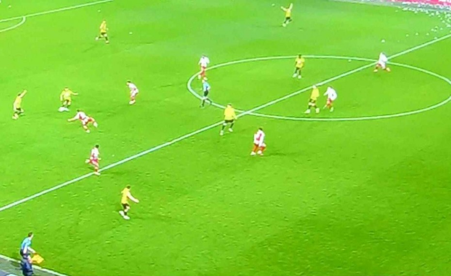 Οι «κιτρινόμαυροι» σκόραραν με κεφαλιά του Βάργκα έπειτα από εκτέλεση κόρνερ στο 59′, ωστόσο πριν εξελιχθεί η φάση του γκολ της ΑΕΚ υπάρχει οφσάιντ, το οποίο δεν υποδείχθηκε ούτε από τον βοηθό ούτε από το VAR, αφήνοντας το γκολ να μετρήσει.