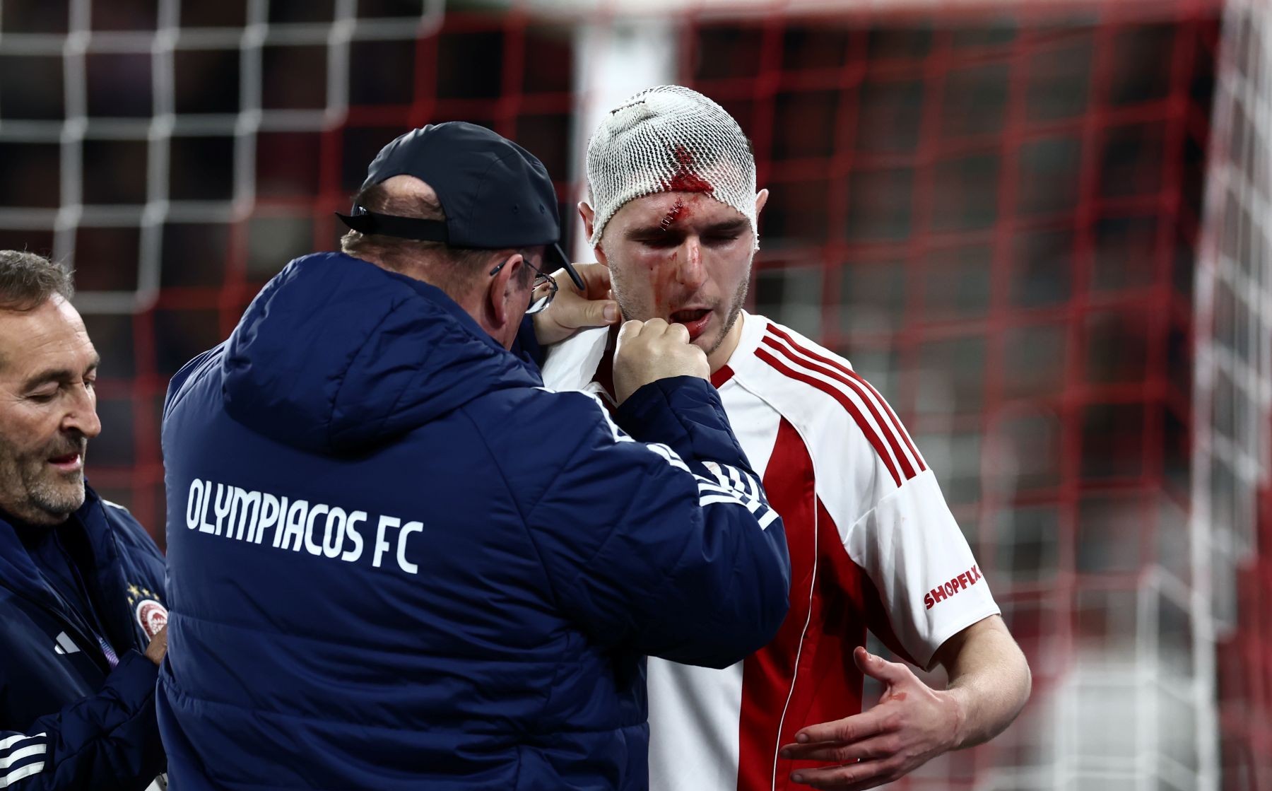 Στο 34ο λεπτό, οι δύο στόπερ των «ερυθρόλευκων» συγκρούστηκαν με δύναμη σε προσπάθεια να διεκδικήσουν την μπάλα, με αποτέλεσμα να σωριαστούν στον αγωνιστικό χώρο με εμφανή τραύματα στο πρόσωπο. Το ιατρικό επιτελείο έσπευσε άμεσα για να τους προσφέρει τις πρώτες βοήθειες, ενώ για αρκετά λεπτά επικράτησε αγωνία στις εξέδρες.