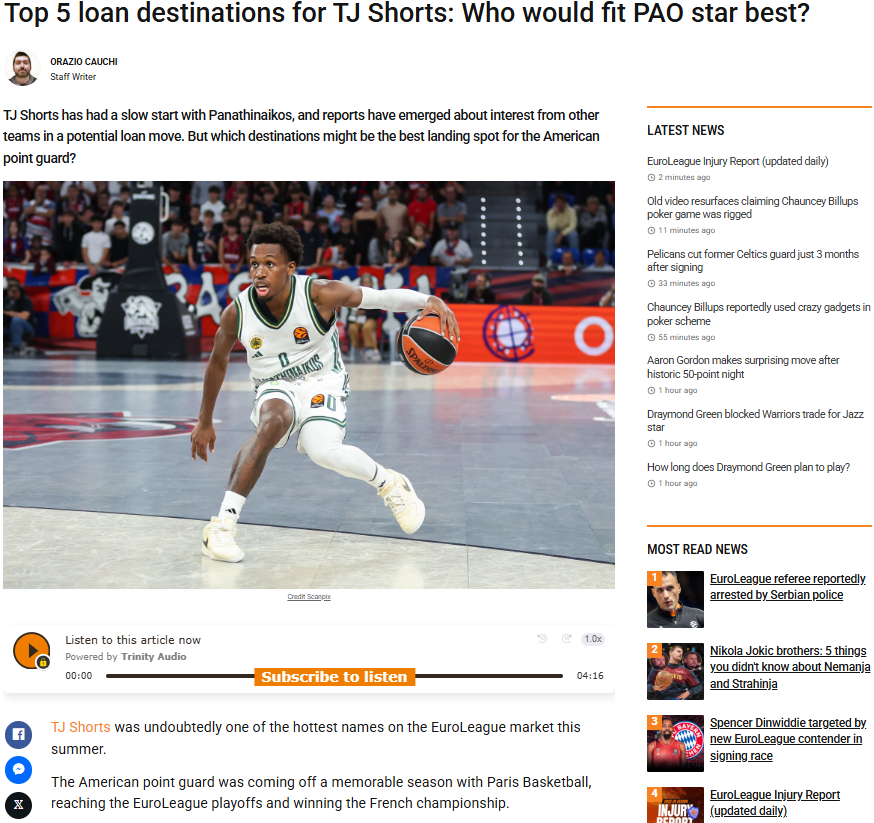 Το BasketNews άνοιξε θέμα γύρω από τον ΤJ Σορτς, αναφέροντας ως πιθανό σενάριο το ενδεχόμενο δανεισμού του, προκειμένου να αποκτήσει περισσότερο χρόνο συμμετοχής και εμπειρίες.
