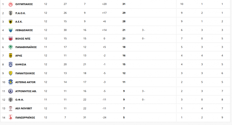 Ο Ολυμπιακός συνεχίζει να επιβεβαιώνει ότι είναι η πιο σταθερή και ολοκληρωμένη ομάδα του πρωταθλήματος. Η βαθμολογία το δείχνει ξεκάθαρα: ο Θρύλος βρίσκεται στο +2 από τον ΠΑΟΚ, στο +3 από την ΑΕΚ και ήδη στο +13 από τον 6ο Παναθηναϊκό, ο οποίος θα μείνει για 16η χρονιά χωρίς πρωτάθλημα.