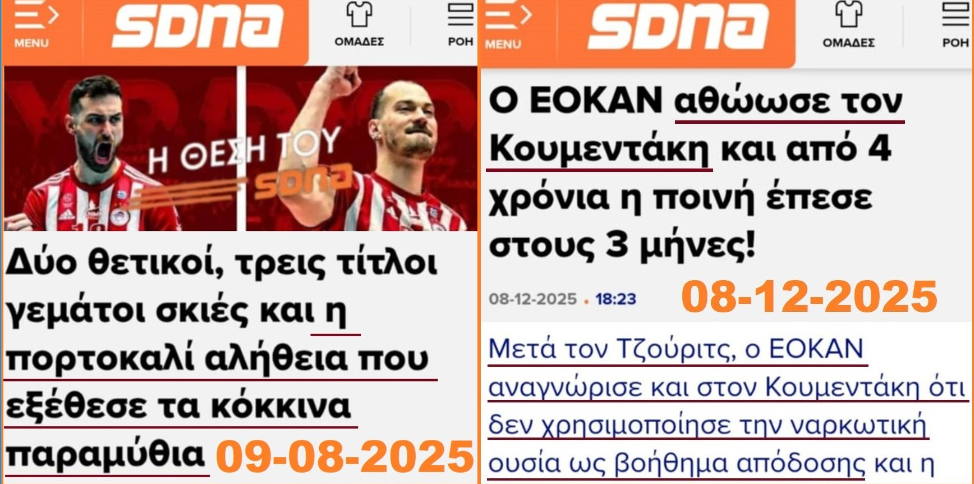 «Η πορτοκαλί αλήθεια που εξέθεσε τα κόκκινα παραμύθια» ήταν ο τίτλος του άρθρου του SDNA πριν από 4 μήνες (link εδώ) αναφορικά με την κατηγορία που αντιμετώπισαν δύο αθλητές του τμήματος βόλεϊ ανδρών του Ολυμπιακού για απαγορευμένες ουσίες, ο Δημήτρης Τζούριτς και ο Ραφαήλ Κουμεντάκης.