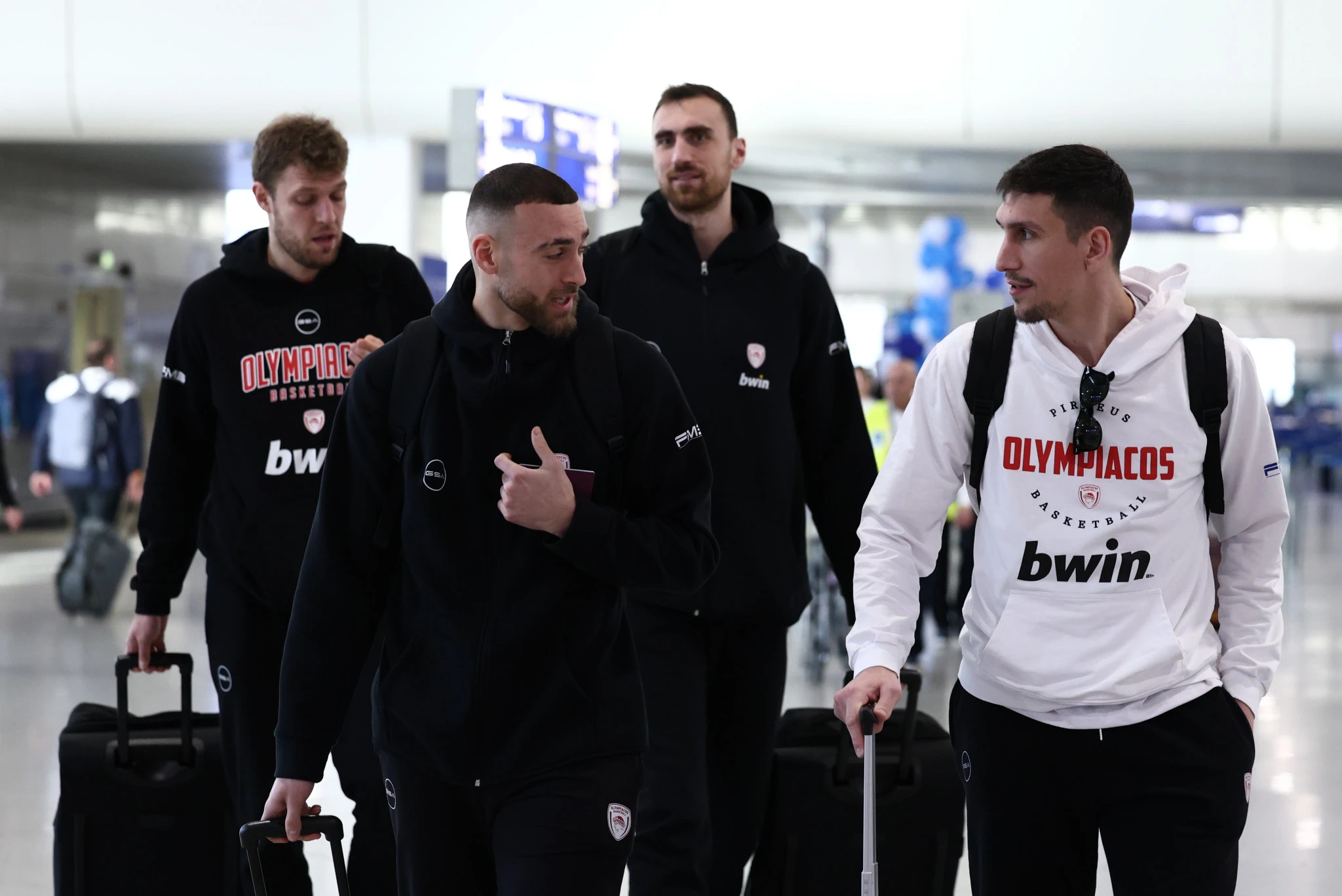 Η αποστολή του Ολυμπιακού αναχώρησε με προορισμό το Ηράκλειο της Κρήτης και το Allwyn Final 8 του Κυπέλλου Ελλάδας.