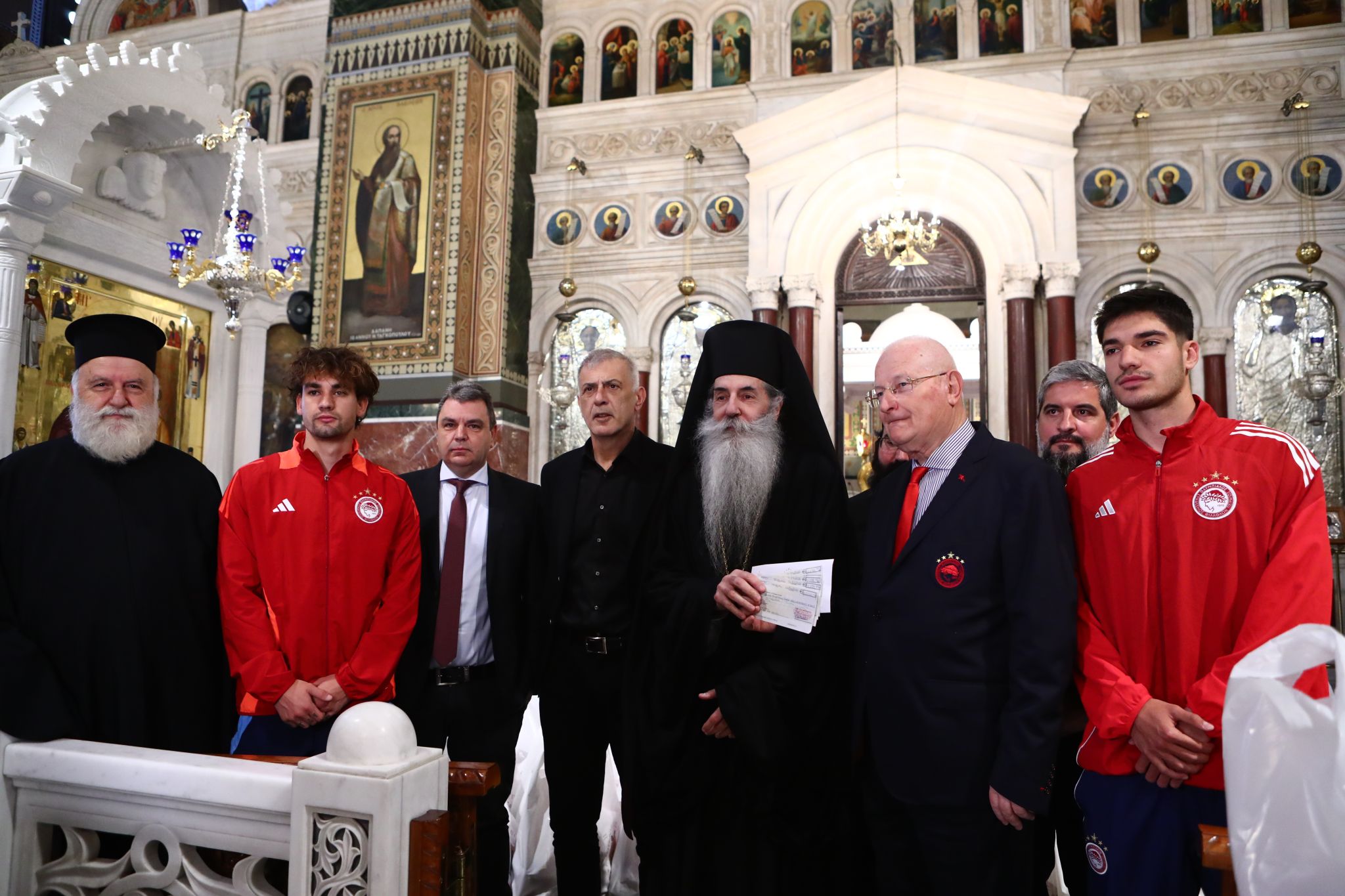 Παράλληλα, ο Πρόεδρος και Διευθύνων Σύμβουλος του σταδίου «Γ. Καραϊσκάκης», κ. Βασίλης Βασιλειάδης, παρέδωσε στον Σεβασμιώτατο Μητροπολίτη Πειραιώς κ.κ. Σεραφείμ, επιταγές για την οικονομική ενίσχυση του κοινωνικού έργου της Μητρόπολης και την κάλυψη της μισθοδοσίας Ιεροδιακόνων της Μητροπόλεως.