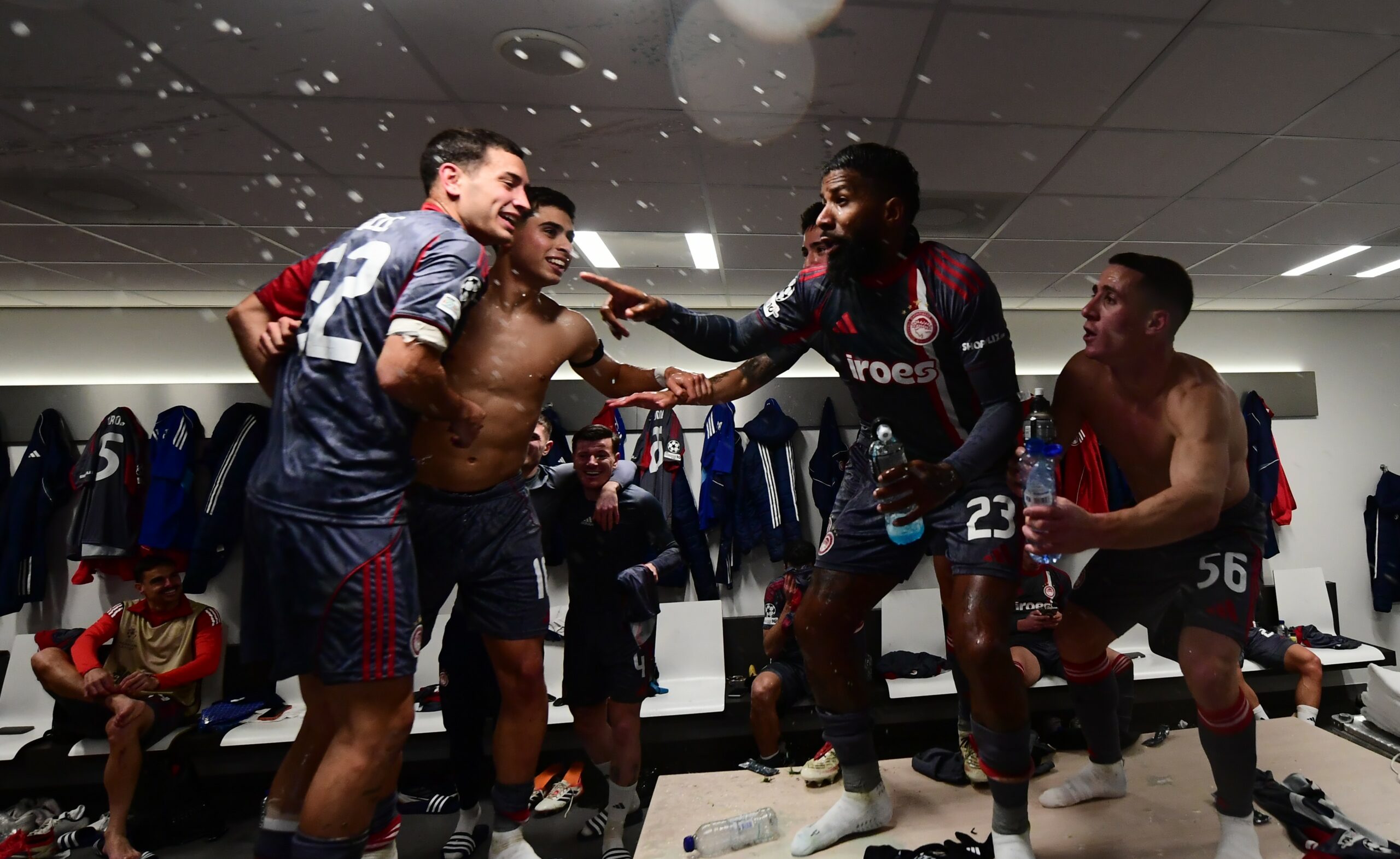 Μετά το τέλος του αγώνα, οι «ερυθρόλευκοι» πανηγύρισαν με την ψυχή τους – παρέα με τον Μπάμπη Κωστούλα – την σπουδαία αυτή πρόκριση στα playoffs της διοργάνωσης, τραγουδώντας, χορεύοντας και παίζοντας μπουγέλο υπό τους ήχους του «Freed From Desire»!