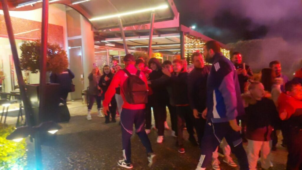 Οπαδοί όλων των ηλικιών συγκεντρώθηκαν από νωρίς έξω από το ξενοδοχείο της ομάδας, προκειμένου να υποδεχθούν τους παίκτες και το τεχνικό επιτελείο, δημιουργώντας μια εντυπωσιακή ατμόσφαιρα.