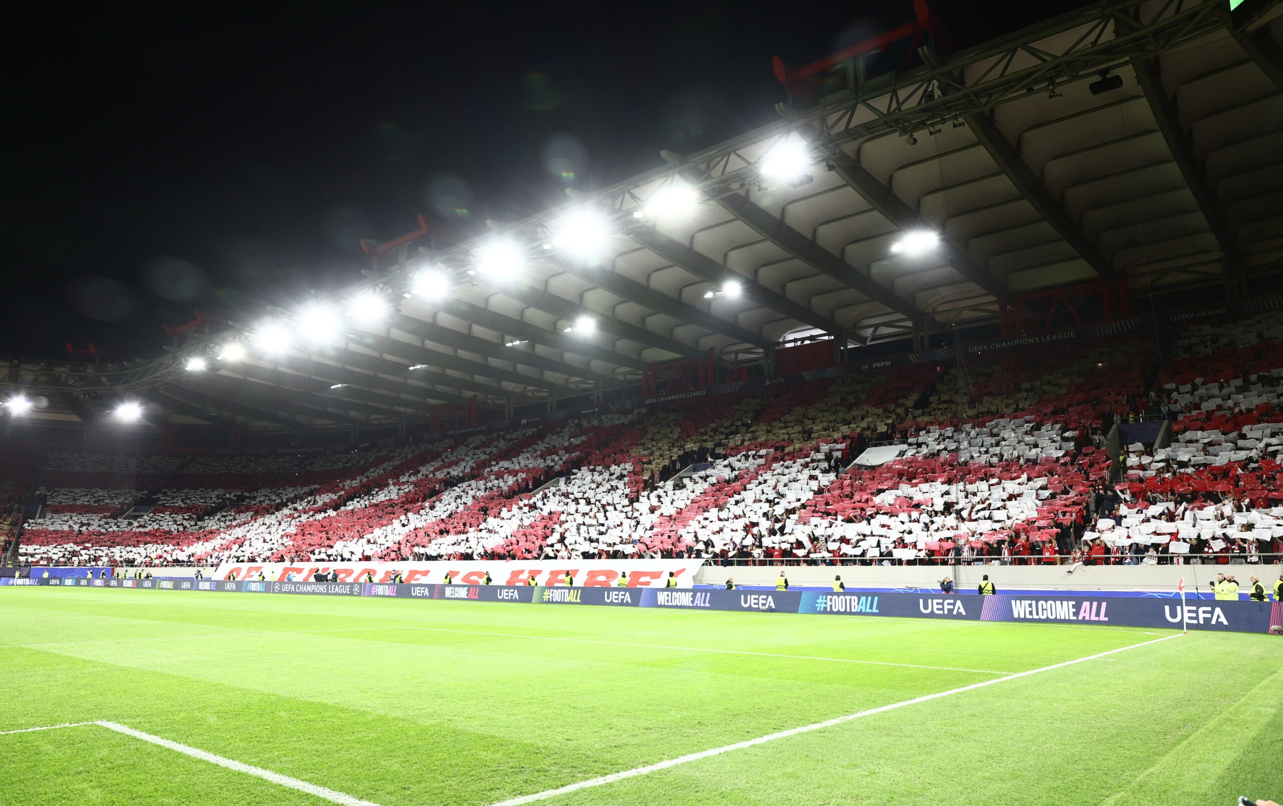 Ο Ολυμπιακός υποδέχεται τη Ρεάλ Μαδρίτης στο Γεώργιος Καραϊσκάκης για την 5η αγωνιστική της League Phase του Champions League και οι φίλοι των Πειραιωτών ετοίμασαν ένα φαντασμαγορικό κορεό.