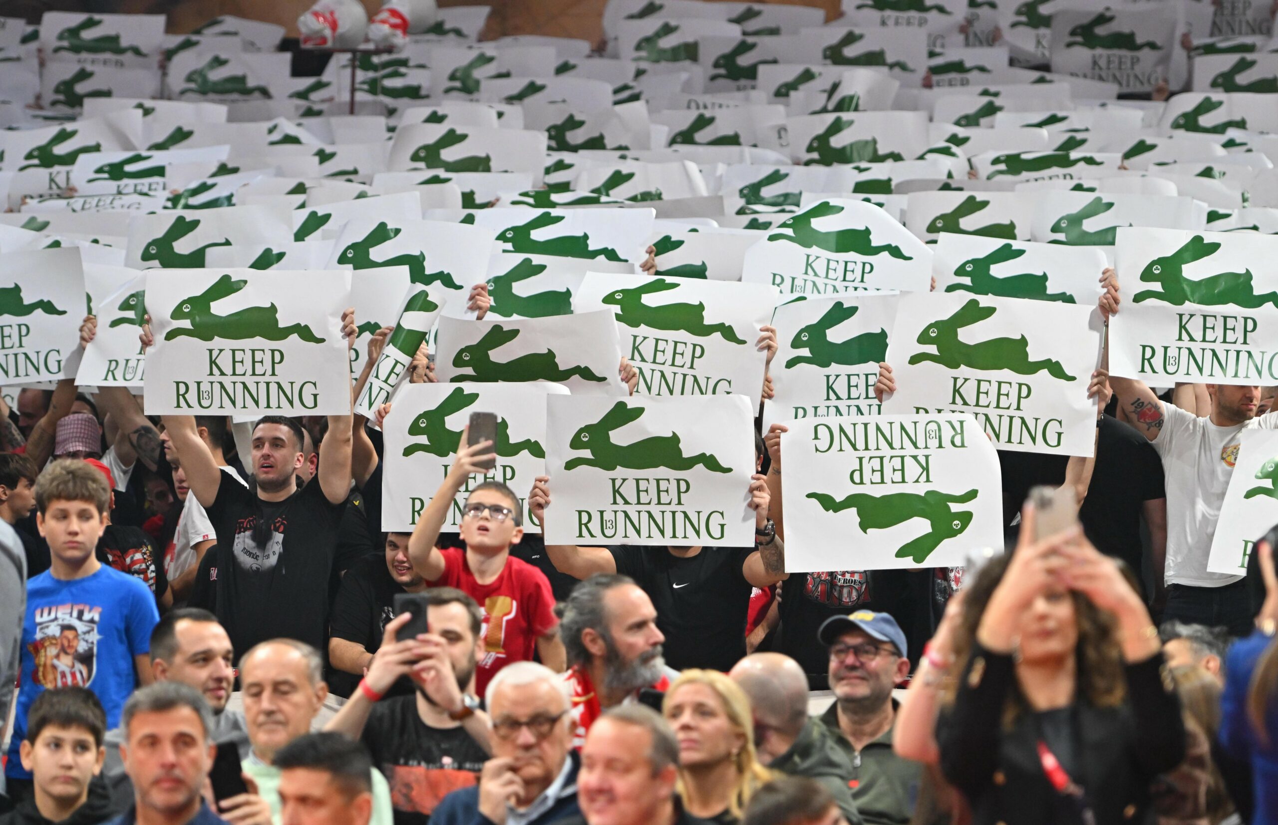 Ο Παναθηναϊκός αντιμετωπίζει αυτή την ώρα τον Ερυθρό Αστέρα, στο πλαίσιο της 9ης αγωνιστικής της Euroleague. Οι οπαδοί της Σερβικής ομάδας επεφύλαξαν μια όχι και τόσο φιλική υποδοχή προς τους “πράσινους” σηκώνοντας χαρακτηριστικά το παρακάτω πανό.