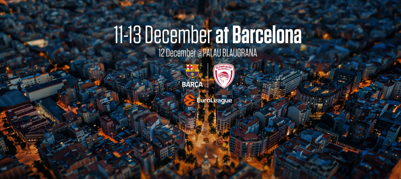 Παρασκευή 12 Δεκεμβρίου μεταφορά από το ξενοδοχείο στο PALAU BLAUGRANA για την παρακολούθηση του αγώνα BARCELONA-OLYMPIACOS BC με ώρα έναρξης 20:30 (τοπική)